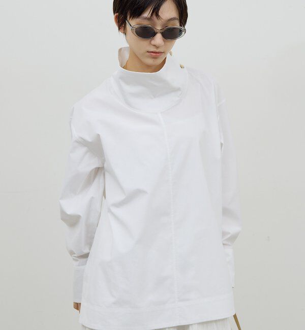 ワイドなハイネックがモード感漂うオーバーシャツ ●立体的なシルエットが洗練された印象のコットンシャツ。 ●袖や首元の金釦、裾に施されたサイドジップはス.. |