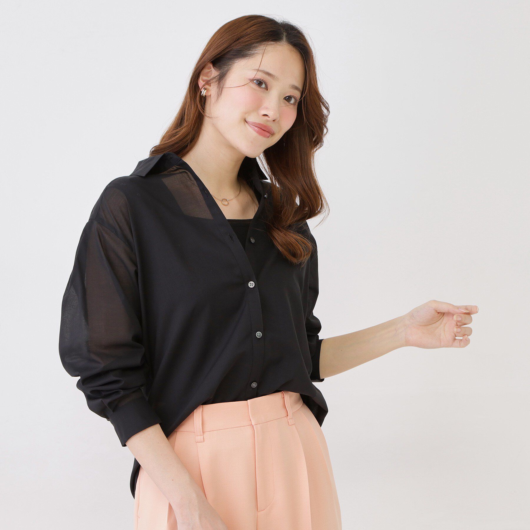 【デザインポイント】軽くてソフトな風合いが今らしいシアーローンのシャツです。衿は小さめのシャツカラーで顔周りをスッキリと仕上げました。ゆとり感あるシ.. |