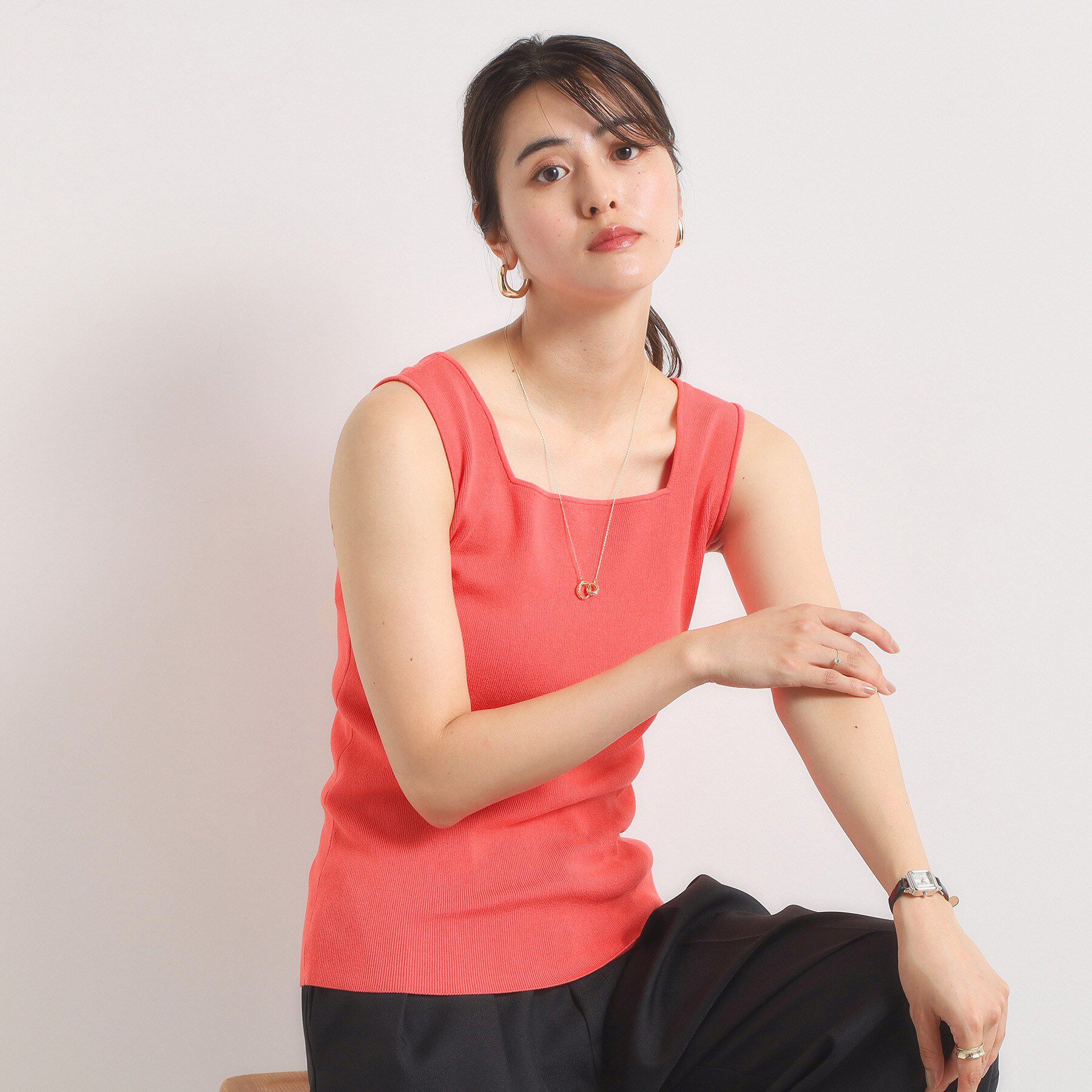 【デザイン】一枚着でもインナーとしても大活躍なロングシーズン使えるアイテム。さらりとした肌触りで清涼感あるサマーニット素材。程よい開き具合のスクエア.. |