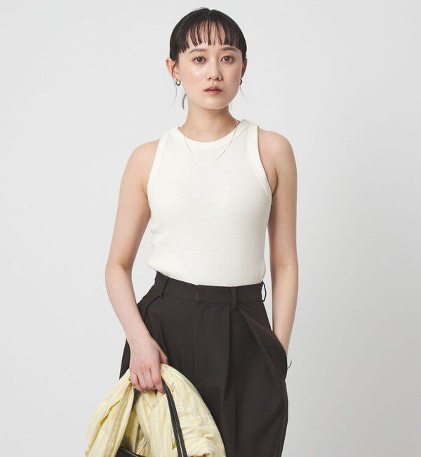 毎日でも着回したくなるデザインと素材が魅力のエブリニットシリーズ■デザインロングシーズン活躍するハイゲージのタンクトップ。デコルテがきれいに見えるネ.. |