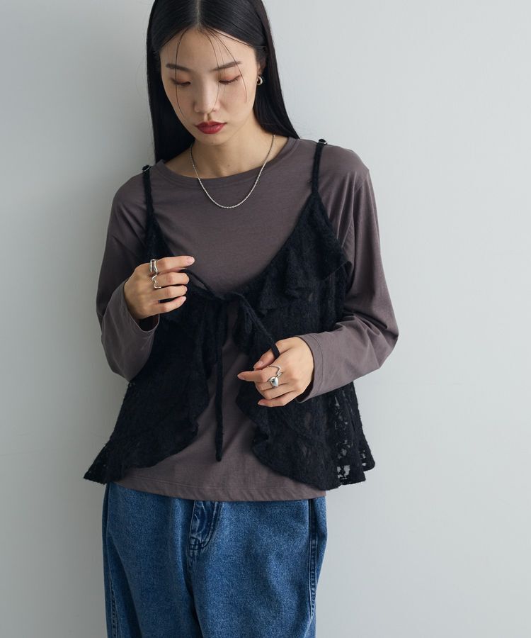 【グリーン パークス/Green Parks】 レースフリルキャミビスチェ