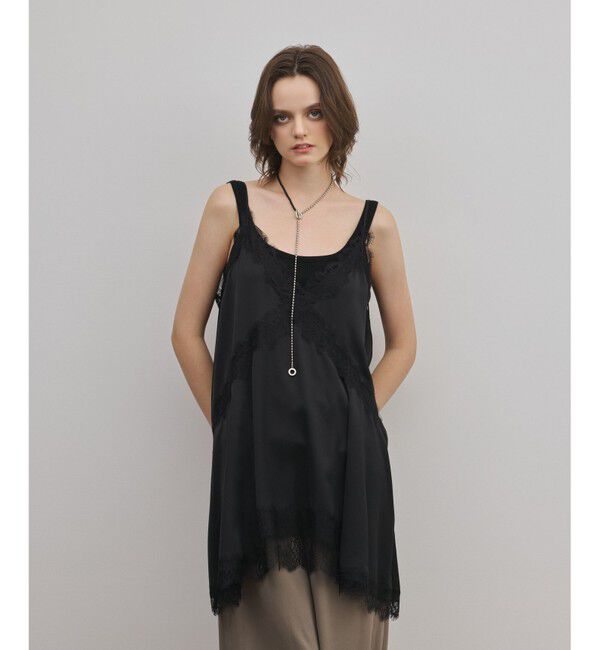 サテン地にデザインの違う繊細なレースを縫い合わせた ランジェリーテイストのキャミソール。 ※こちらのモデル着用画像はサンプル品を撮影しております。実際.. |