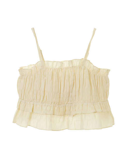 トレンドライクなシャーリングを贅沢に施したキャミソールビスチェ。フリルティアードを施すことでで立体感を演出し、フェミニンな雰囲気をプラスしました。バ.. |
