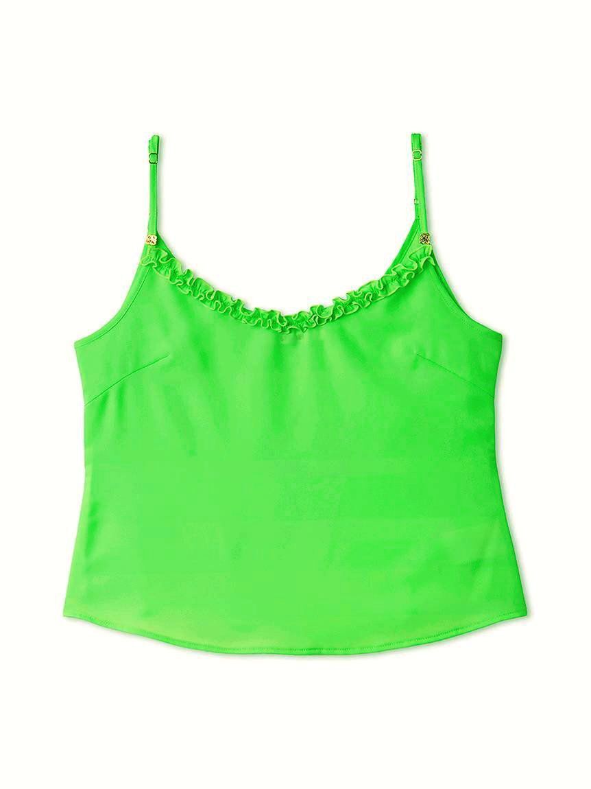 【艶やかなサテンライクな生地感がニュアンスをプラスするフリルトリムキャミソール】【Design/Styling】艶ややかなサテンライクな生地を使用してお作りした、.. |