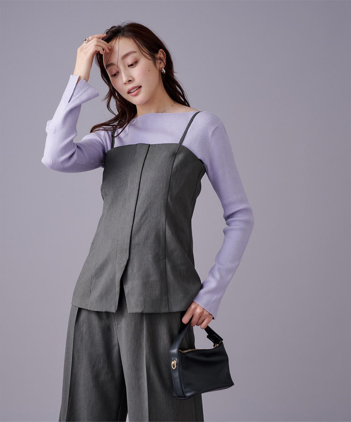 ・程良いリブで着心地が良い。 ・肩紐が女性らしくヘルシーにも着こなせる一枚。 ・一枚ではもちろん、インナーにしても、ビスチェにしても着用できる有能アイ.. |