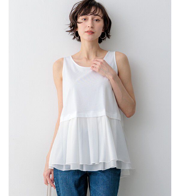 【ニジュウサンク/23区】 ナチュラルコットンベア シアーペプラム タンクトップ