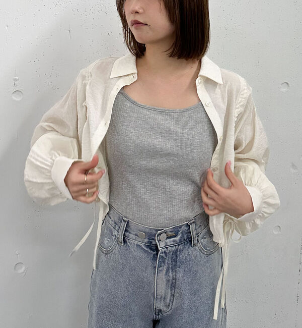 トレンドのバルーンシルエットを取り入れたキャミソール ■デザイン 肩紐はご自身で結んでいただく仕様なので、身長やインナーに合わせて調節していただけます.. |