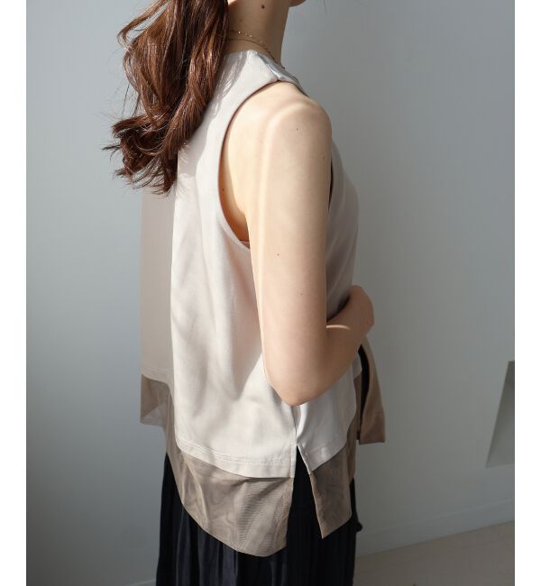 【ルクールブラン/le.coeur blanc】 サテン×スムース 裾チュールタンク