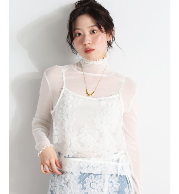 【ルクールブラン/le.coeur blanc】 《手洗い可能》カットワークレースキャミブラウス