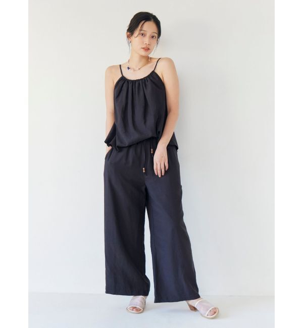 キャミソールとパンツがセットになった、オールインワン見えするデザインが魅力のセットアップ ■デザイン 上下ともにウッドビーズをあしらい、さりげないアク.. |