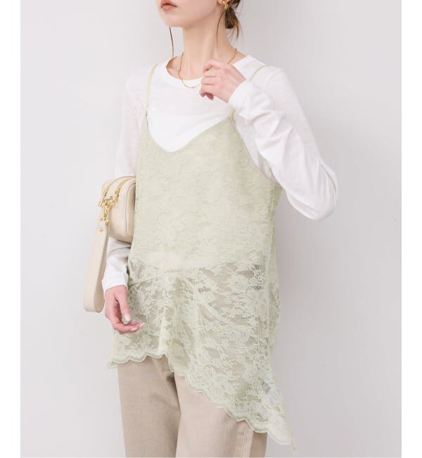 手洗い可能/レース【2026SS】SLOBE IENAPOINT・華やかさと女性らしさを引き立てる、総レース仕立てのペプラムキャミソール。【素材の特徴】総レースの素材が上.. |