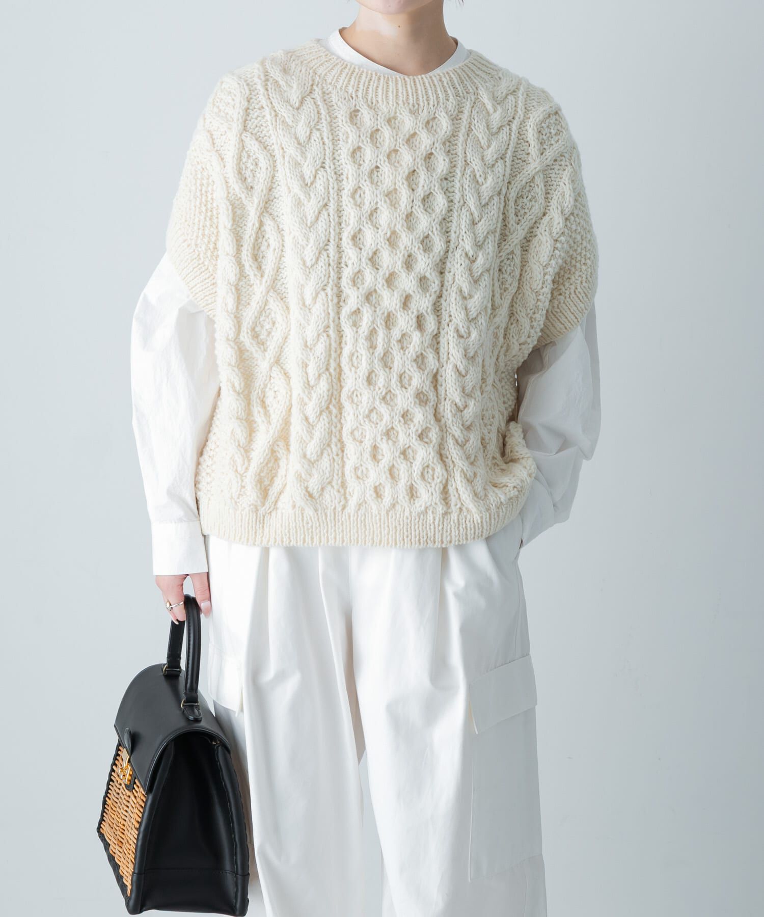 大人のおしゃれ心をくすぐる主役ニット手編みの優しい雰囲気と無染色の色合いが魅力的なアイテム。ボリュームは出すぎずからだに馴染み、大きくは見えないのが.. |