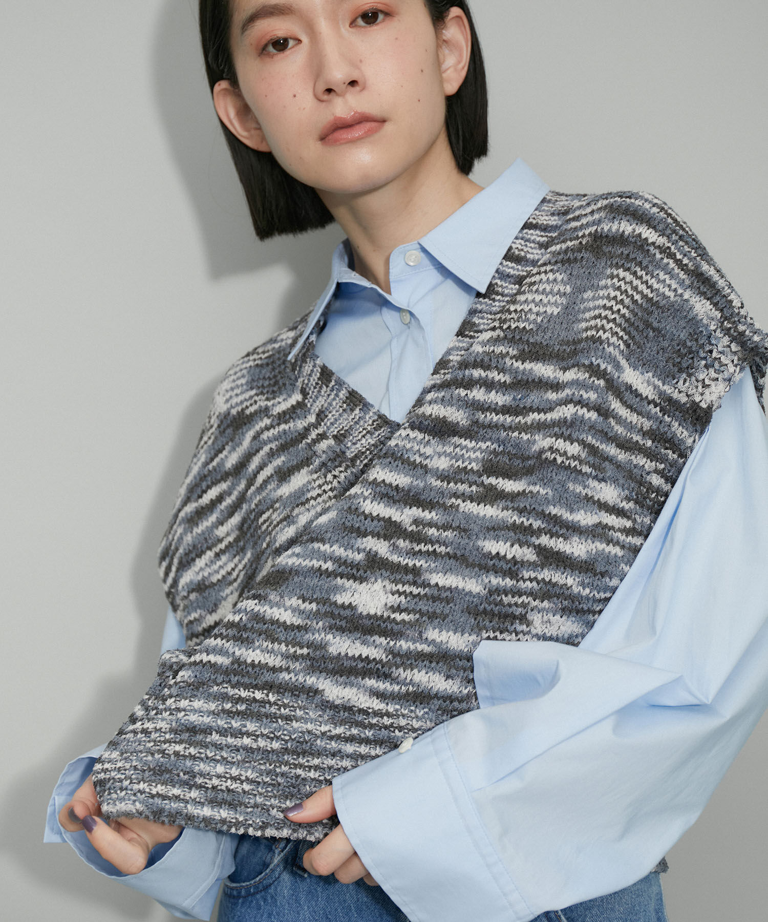 好評のシャギーニットカーデは去年の糸からややボリューム感のある糸にブラッシュアップ。英語で「毛むくじゃらの」という意味から、毛足の長い毛羽立っている.. |