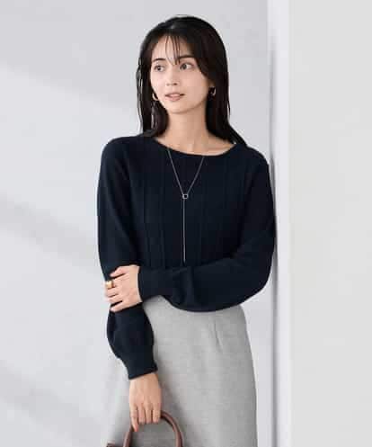 a.v.v(アー・ヴェ・ヴェ) アーガイルパフスリーブニット ネイビー/紺 39
