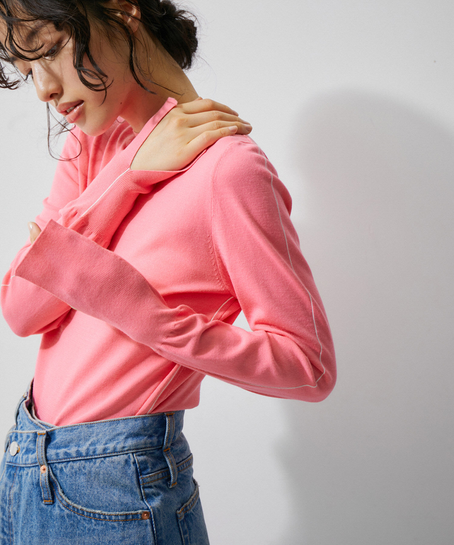 【Design】アウトのままスタイリングしやすい、短すぎないショート丈ニット。冬から春まで長く着られる程よい肉感で、どんなボトムでも合わせやすく着回し力◎.. |