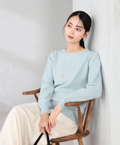 a.v.v(アー・ヴェ・ヴェ) スパンコール混クルーネックニット ライトブルー/青 38