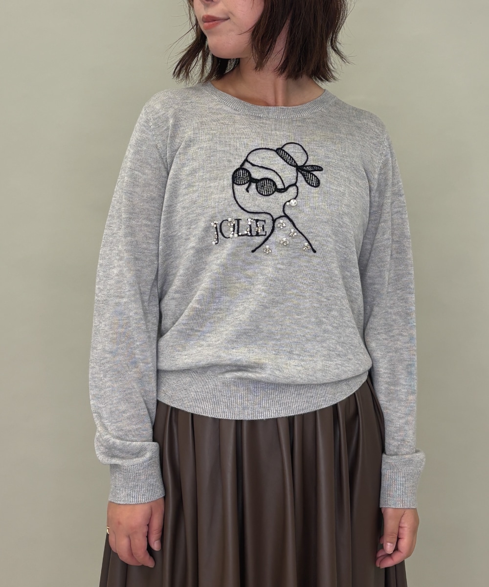 ・al'aise modulation・ 【デザイン】ウール混のハイゲージニットで仕立てたプルオーバートップ。フロントにはキュートな女の子の刺繍モチーフを施し、パール.. |