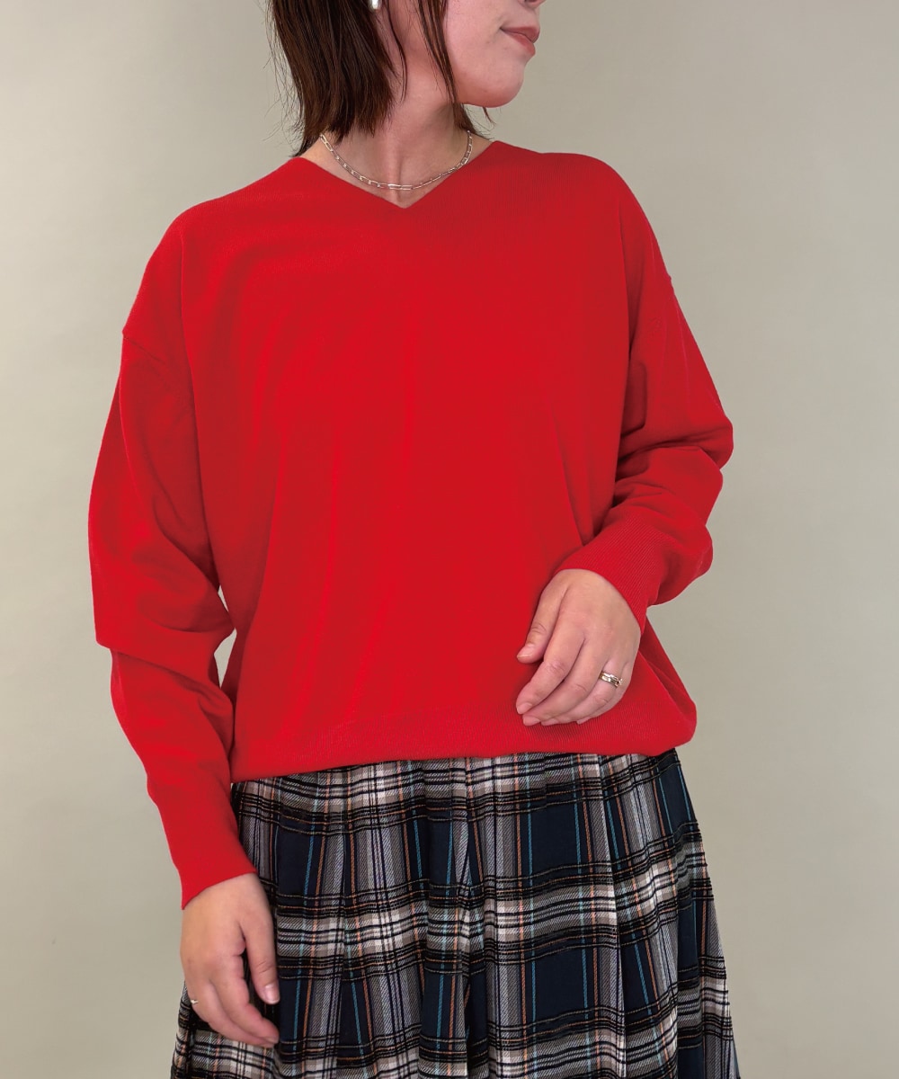 al’aise modulation(アレーズモジュレーション) 【洗える】ミニマルVネックニットプルオーバー レッド/赤 38