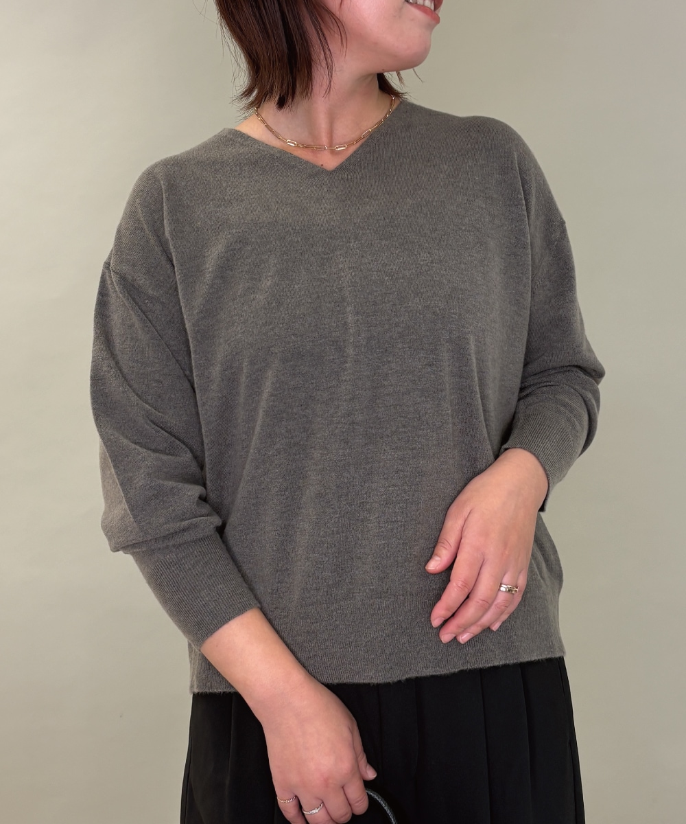 al’aise modulation(アレーズモジュレーション) 【洗える】ミニマルVネックニットプルオーバー モカ 38