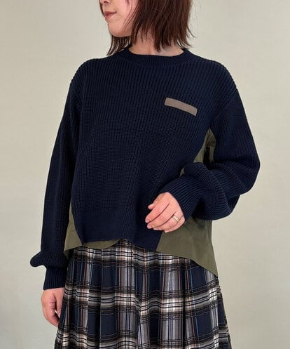 ・al'aise modulation・ 【デザイン】異素材のMIXデザインが目を惹くプルオーバー。ミドルゲージの畦編みニットに光沢のあるタフタ素材を切替えてほんのりミリ.. |