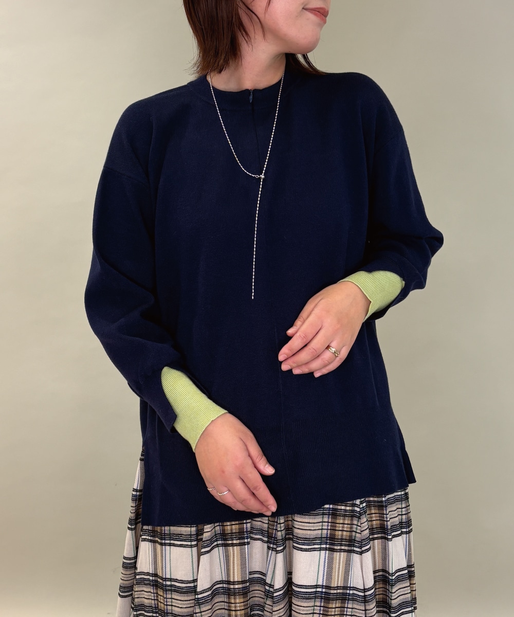 al’aise modulation(アレーズモジュレーション) 【洗える】配色レイヤードリブニットプルオーバー ネイビー/紺 38