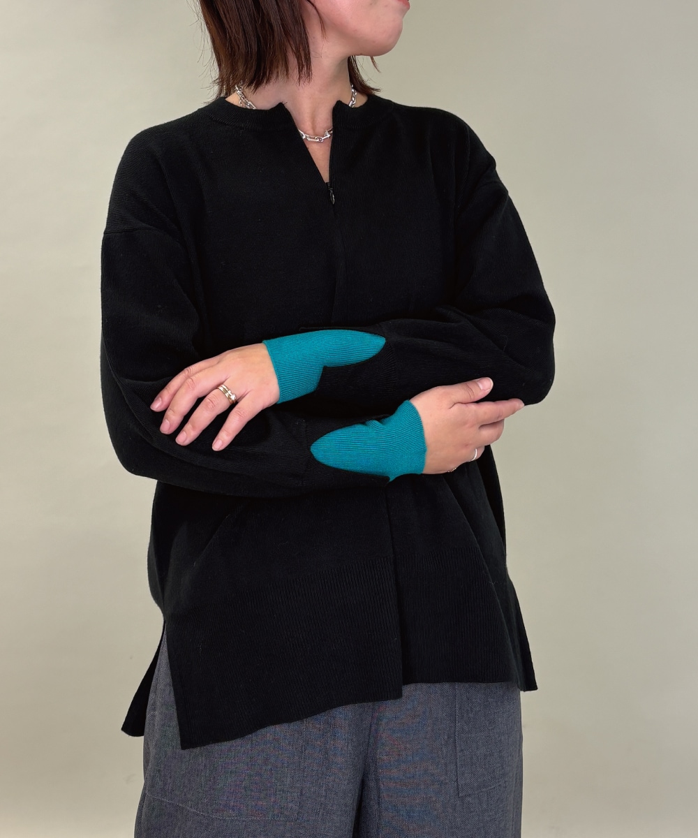 al’aise modulation(アレーズモジュレーション) 【洗える】袖口フレア配色リブニット ブラック/黒 38