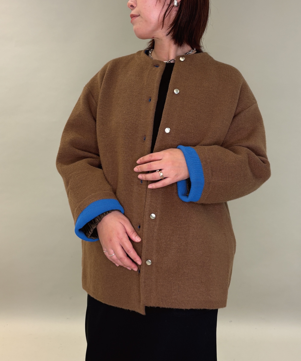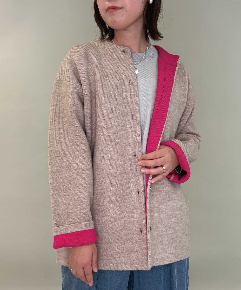 ・al'aise modulation・ 【デザイン】裏面の配色カラーちらりと覗くワンポイントを施したニットコーディガン。コートライクに着用頂ける程よい厚手で丈感長め.. |