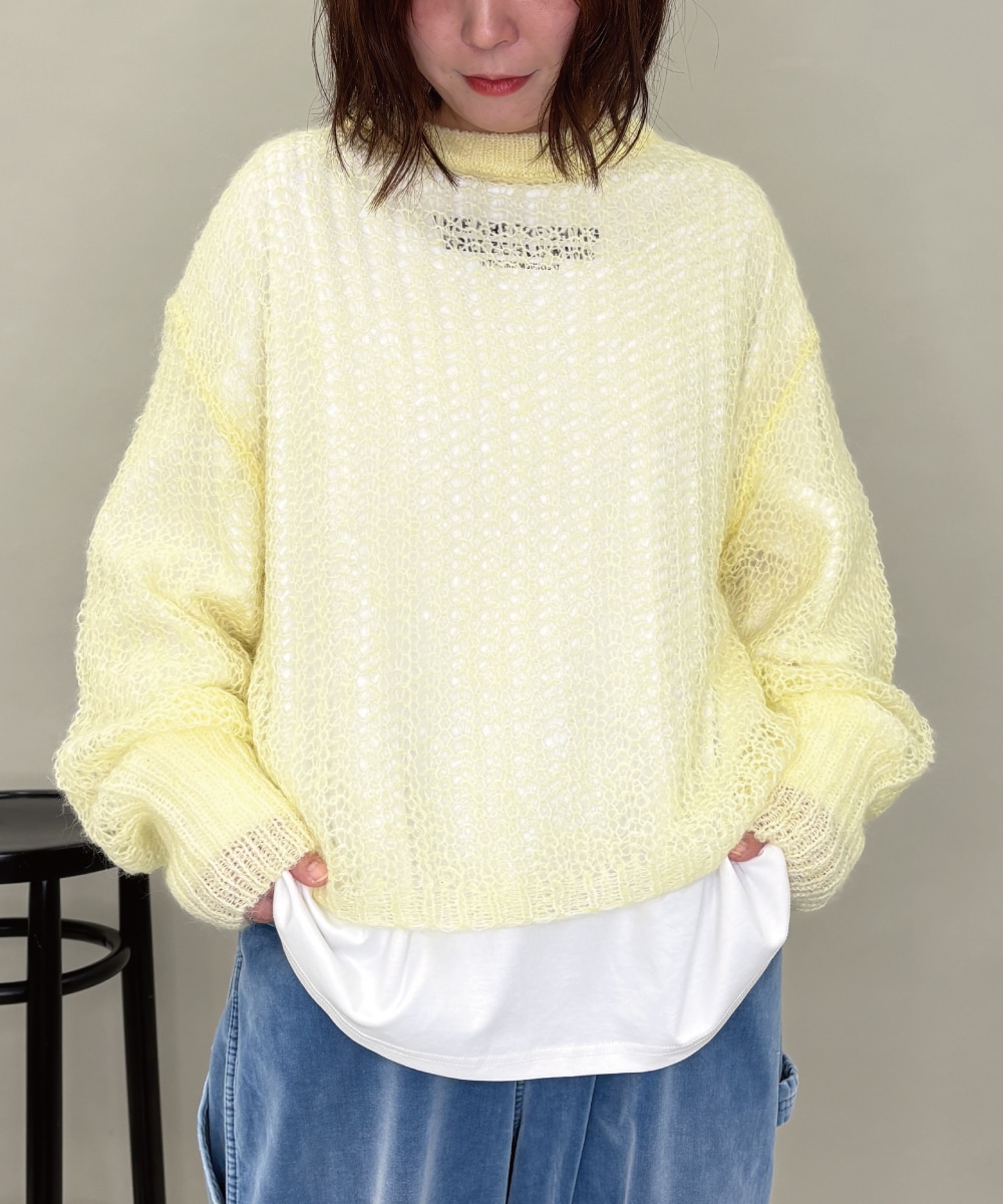 al’aise modulation(アレーズモジュレーション) モヘヤ混ルーズメッシュニットプルオーバー ライトイエロー/黄 38