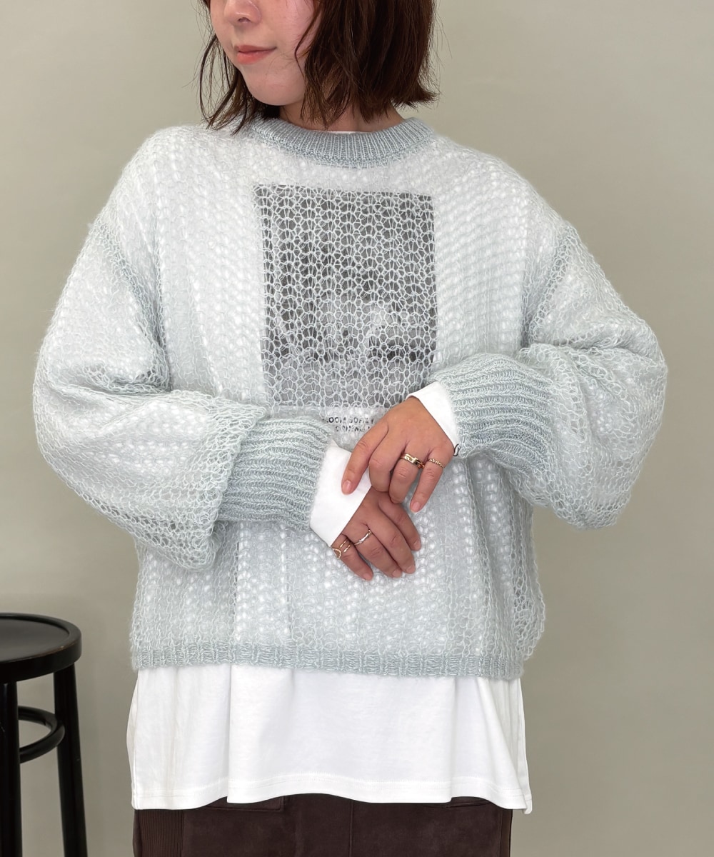 ・al'aise modulation・ 【デザイン】モヘヤ混のライトなハイゲージで編み仕立てたデザインニットプルオーバー。こなれ感のあるルーズメッシュの柔らかな風合.. |