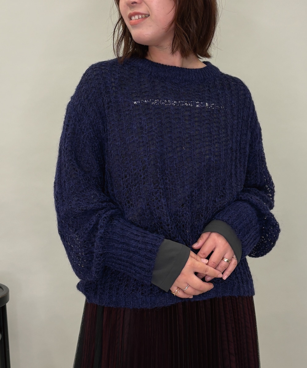 al’aise modulation(アレーズモジュレーション) モヘヤ混ルーズメッシュニットプルオーバー ネイビー/紺 38