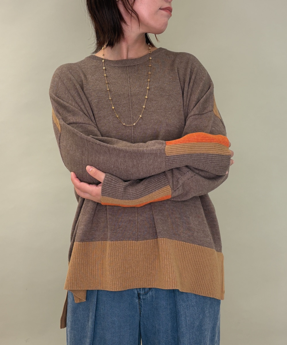 al’aise modulation(アレーズモジュレーション) ラインカラーリブデザインニットプルオーバー モカ 38