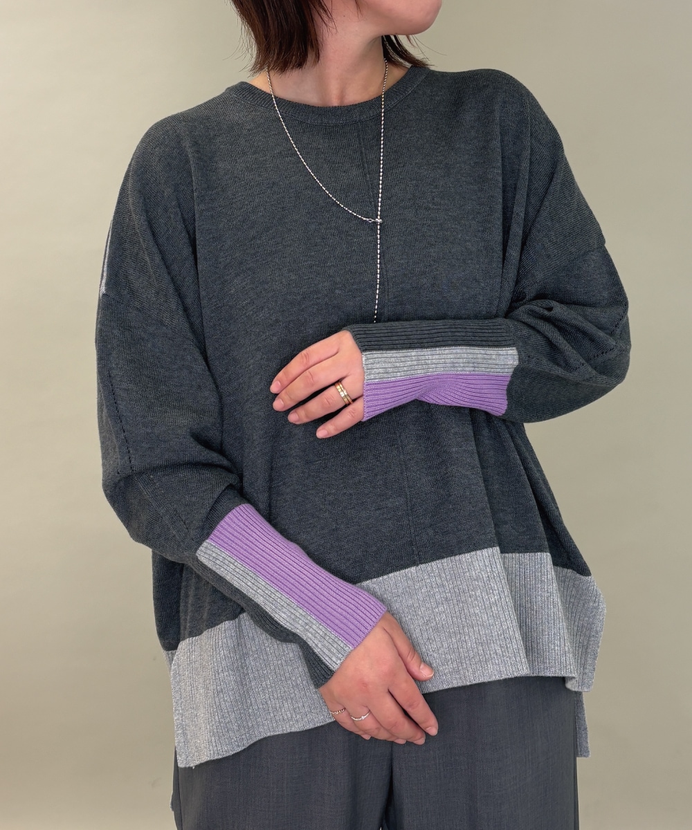 al’aise modulation(アレーズモジュレーション) ラインカラーリブデザインニットプルオーバー ダークグレー/灰 38