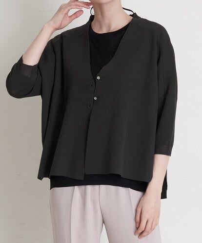 ・al'aise modulation・ 【デザイン】 ハイゲージのライトな風合いが春夏にぴったりのニットカーディガン。 ドルマンフォルムのコンパクトなお袖やシンプルな.. |