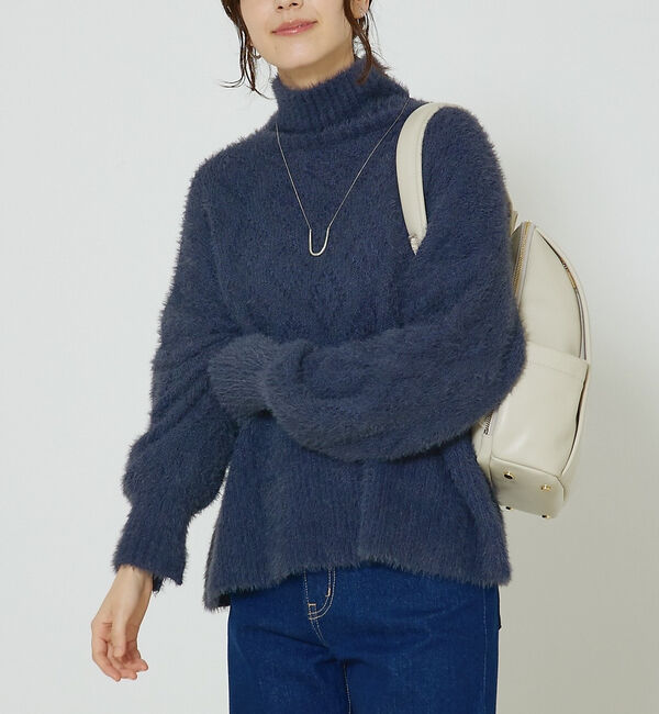 【Design】ゆるめのタートル衿、スリットの入った萌え袖、思わず触りたくなるふわふわシャギー、甘くはないのに、大人が着たくなる“かわいい”が詰まったニット.. |