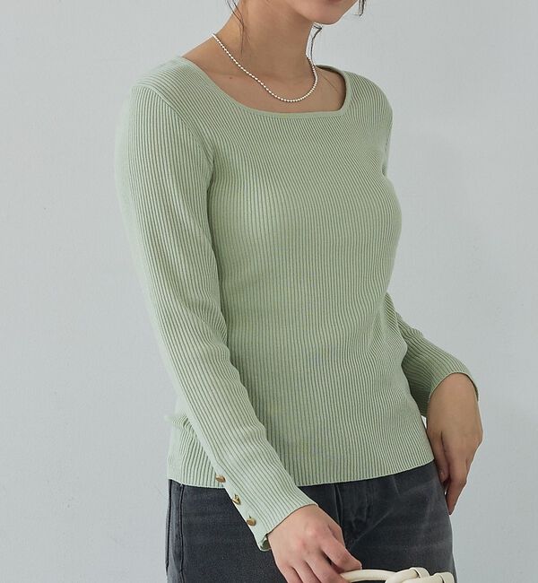 【アバハウス マヴィ/abahouse mavie】 【袖ボタン】スクエアネックリブニット/きれいめ/セミオケ/通勤/春服【予約】