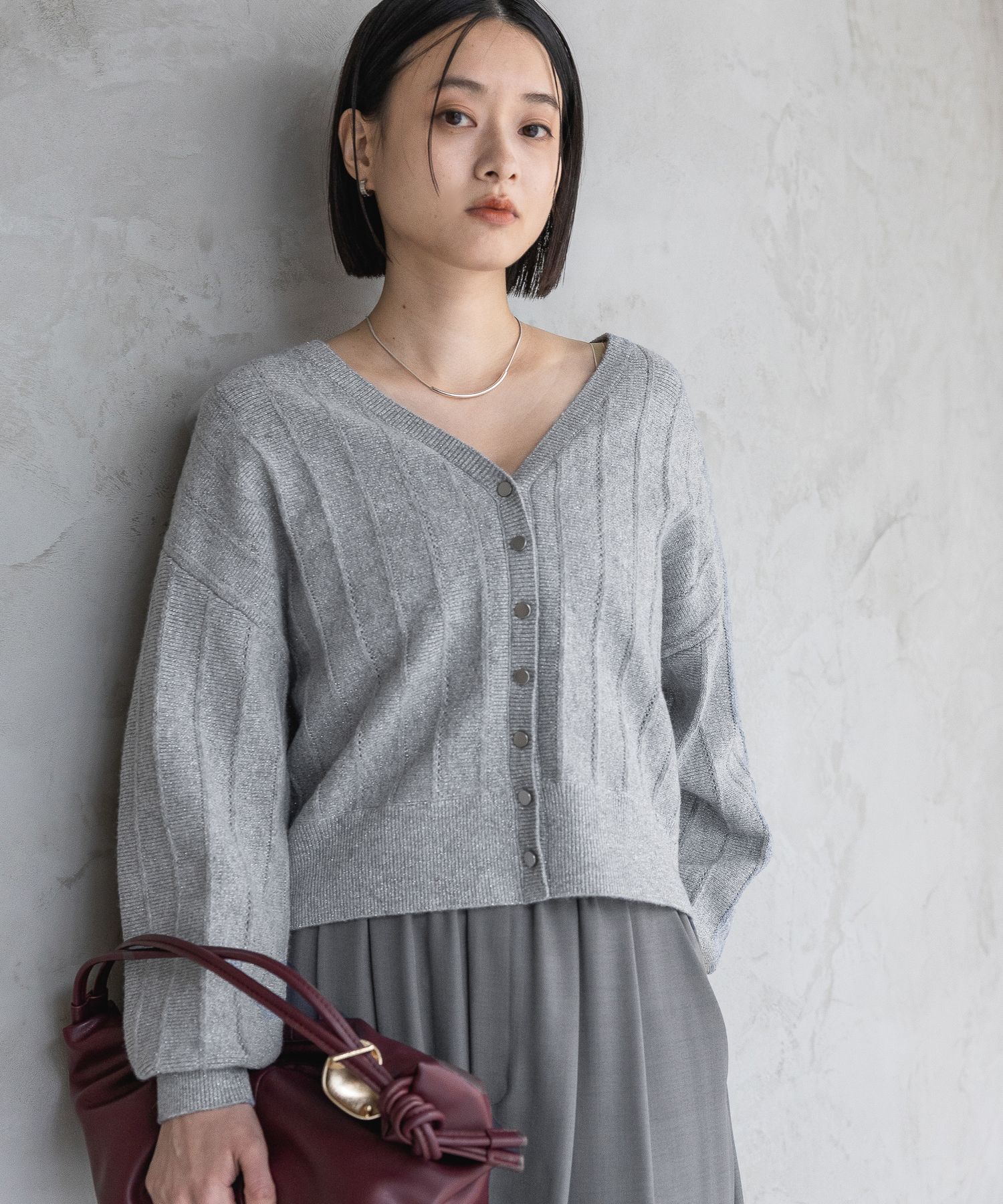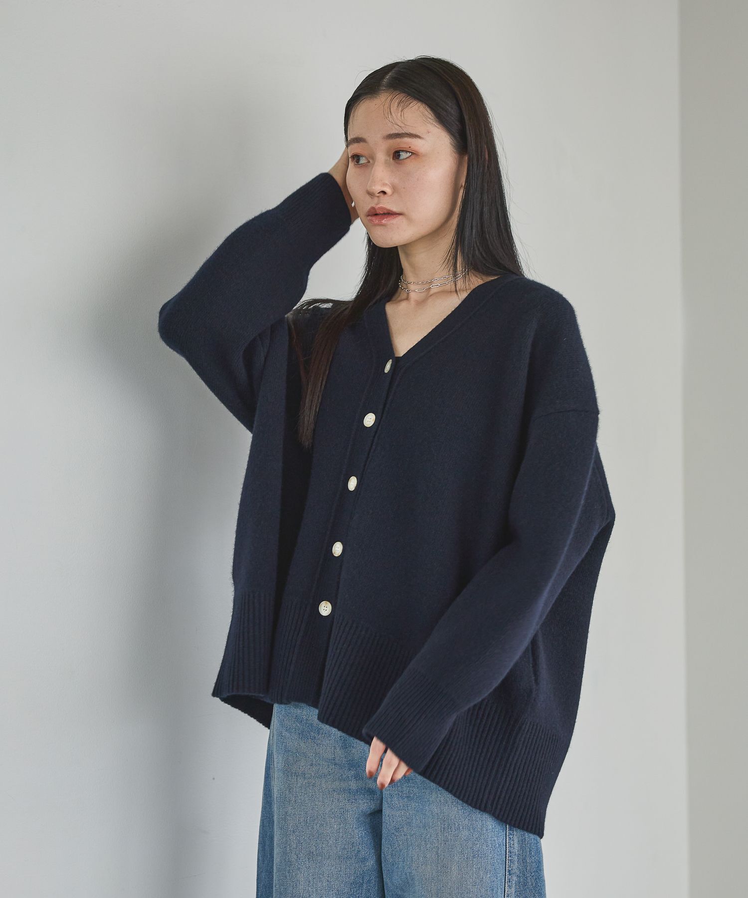 【アパートバイ/A part by】 カシミヤコンBIG Vネックカーディガン