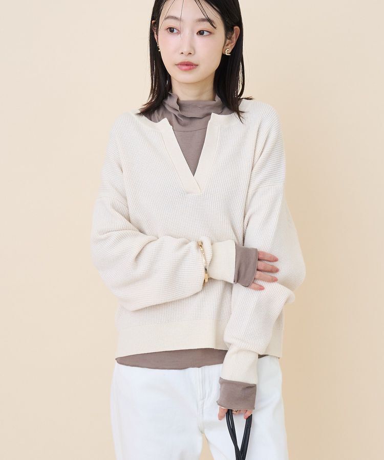もちもちとした肌触りが心地よいワッフルニット。表情のあるワッフル編みで、シンプルながら一枚でこなれた印象に仕上がります。首元はヘンリーネック仕様で程.. |