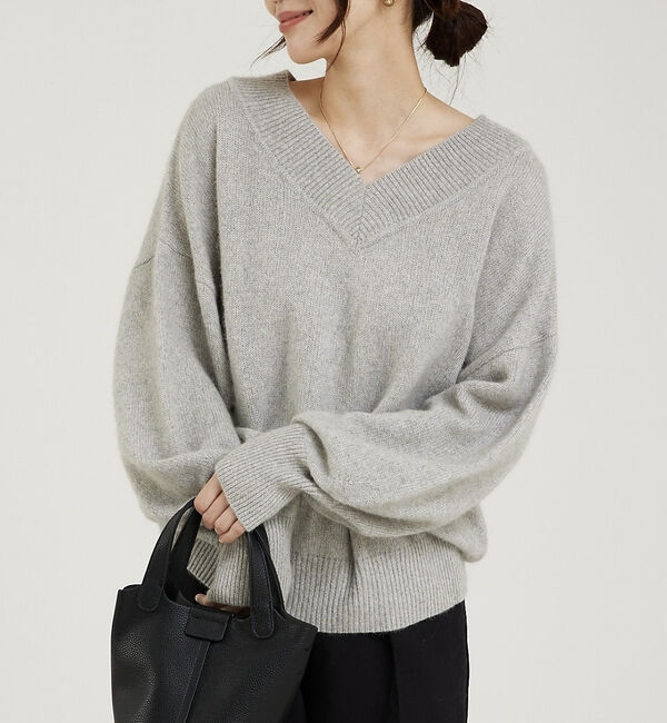 【Design】さりげないラメがポイントの2WAYニットプルオーバー。前後着用可能でVネックとラウンドネックが楽しめます。ゆったりサイズで袖の膨らみがキュート.. |