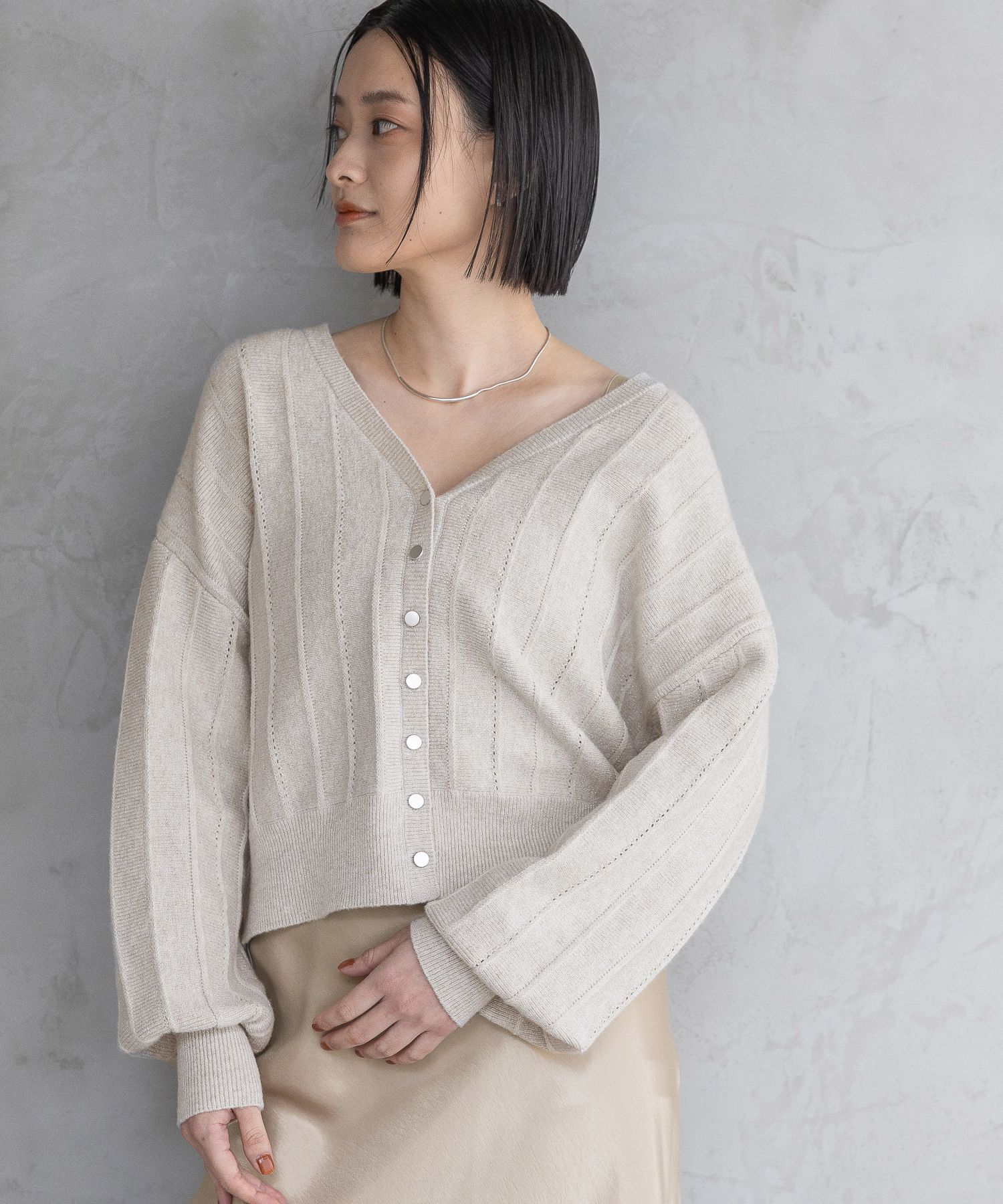 【アパートバイ/A part by】 カシミヤコンBIG Vネックカーディガン