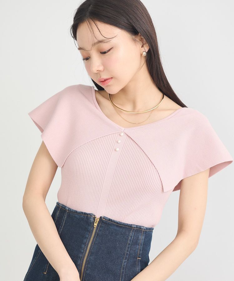 【アースミュージックアンドエコロジー/earth music&ecology】 レイヤード風ギャザーショルダーリブニット