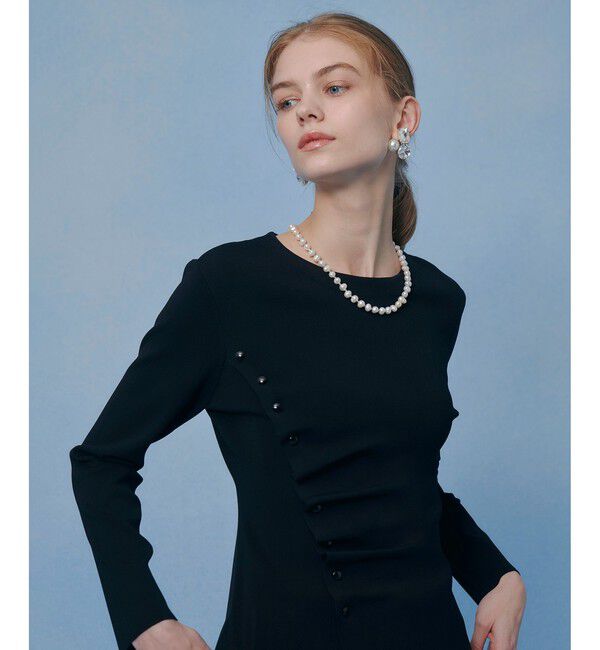 【LOULOU WILLOUGHBY 2026 Spring & Summer】ボタンとニットのドレープがアクセントになったプルオーバー。シンプルながらもデザイン性があり、一枚で.. |