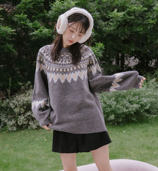 ■ゆるっとキュンな映えニット■柄にときめくノルディックニット。ミドル丈とゆるっとしたサイズ感で甘さとカジュアル両方欲張れます♪もちもち系の生地感で着心.. |