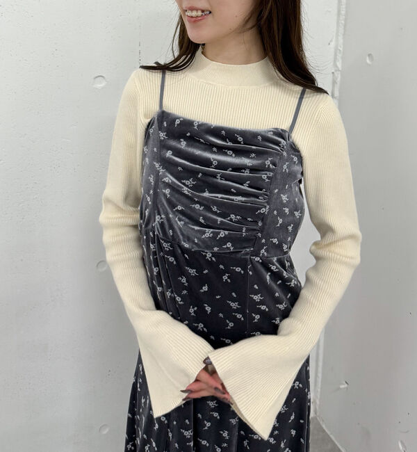 【アルシーヴ/archives】 ベロアリボンリブオフショルニットプルオーバー