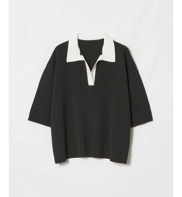 【allureville 2024 autumn&winter】トレンドの「ポロシャツ」を、女性らしくブラッシュアップしたニットポロ。ボタンを配色にし、深めの前立てで視覚.. |