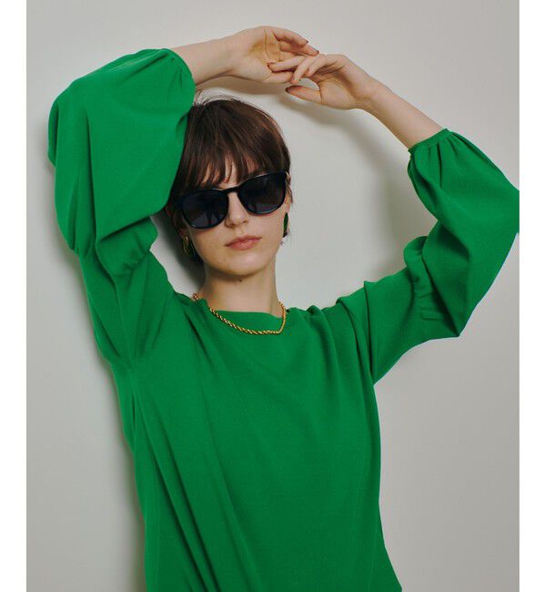 【allureville 2026 Spring & Summer】目面がきれいで、程よい肉感の総針組織を使用した一枚プルオーバー。二の腕はすっきりさせ、肘上からギャザーを.. |