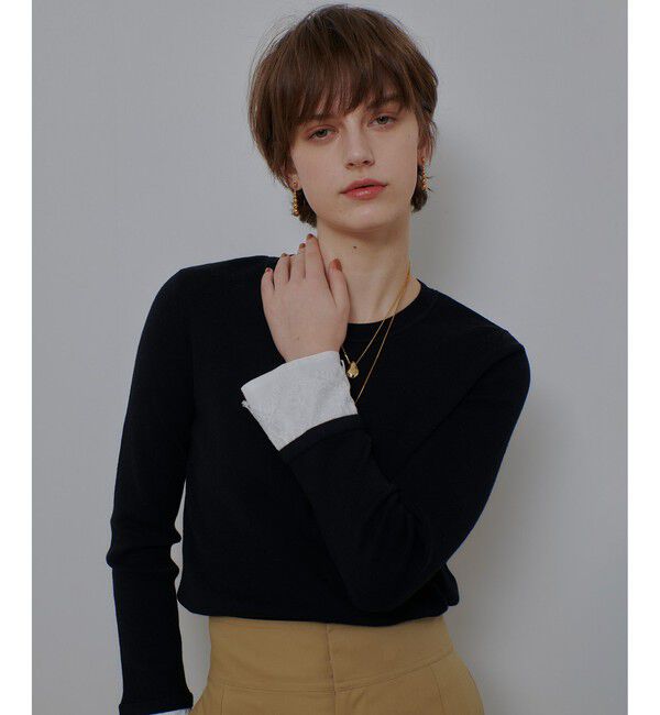 【allureville 2025 autumn&winter】レースカフスをアクセントにしたプルオーバー。袖口のカフスには繊細なレースを重ね、フェミニンな印象をプラスし.. |