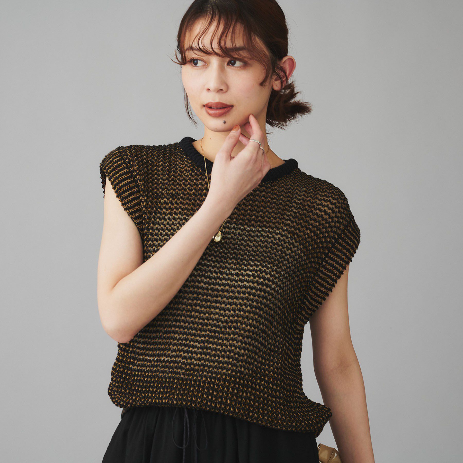 ざっくりとした手編みでしか表現できない、存在感のあるケーブル編みが魅力のノースリベスト ■デザイン 透け感が可愛らしく、ぐっと秋らしいスタイリングに仕.. |