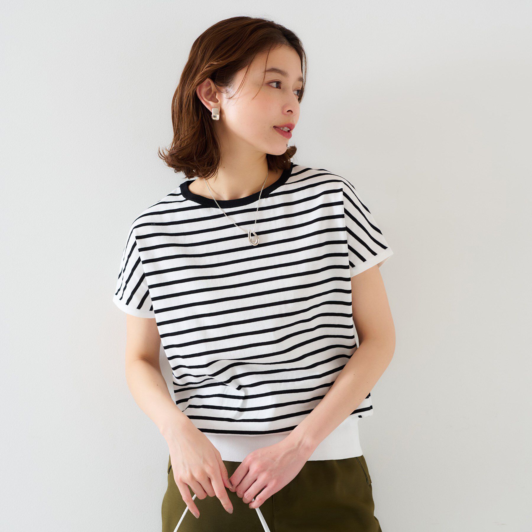 【アングリッド/Ungrid】 透かし編みボーダーショートニット
