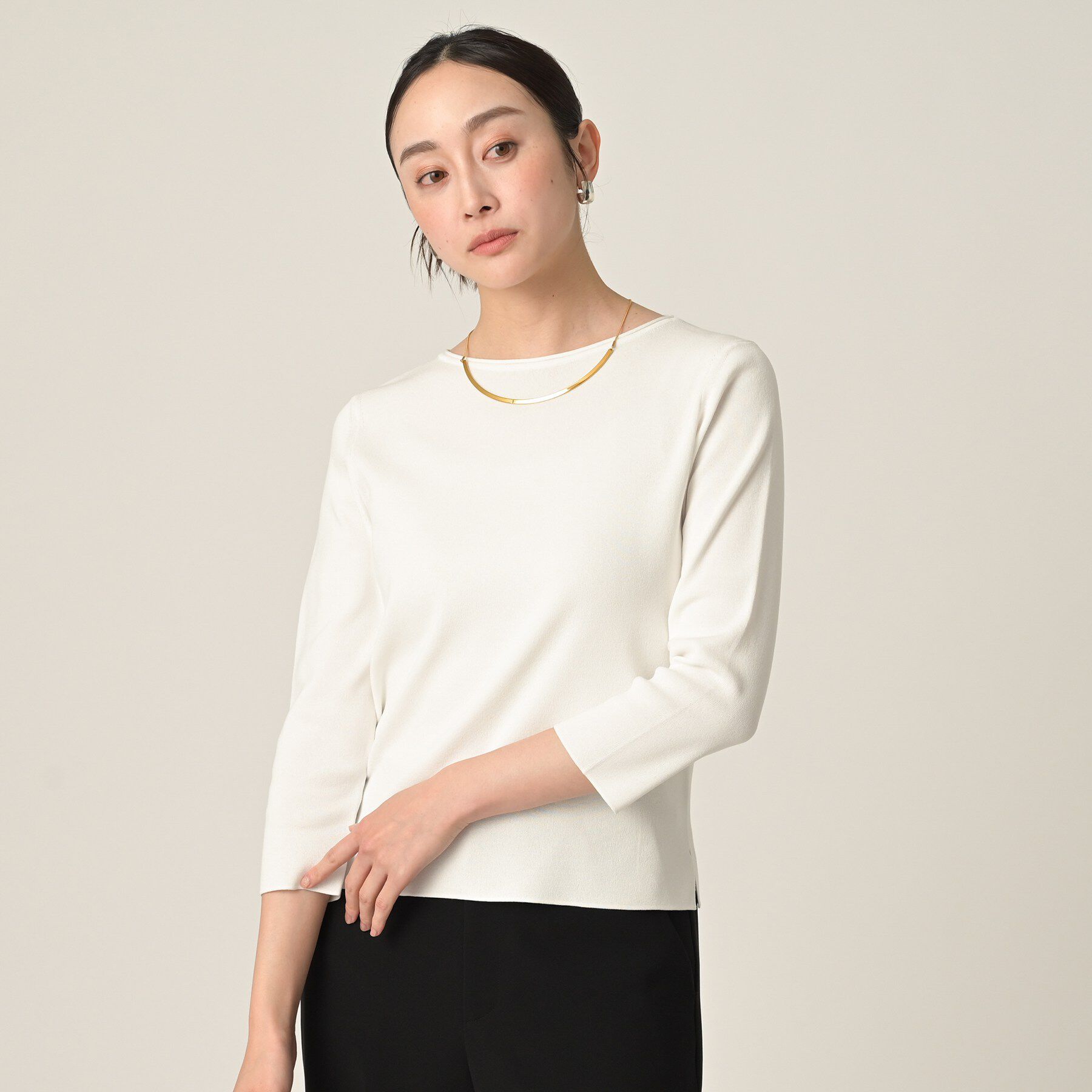 【アンタイトル/UNTITLED】 【洗える/七分袖】ボートネックコットンプルオーバー
