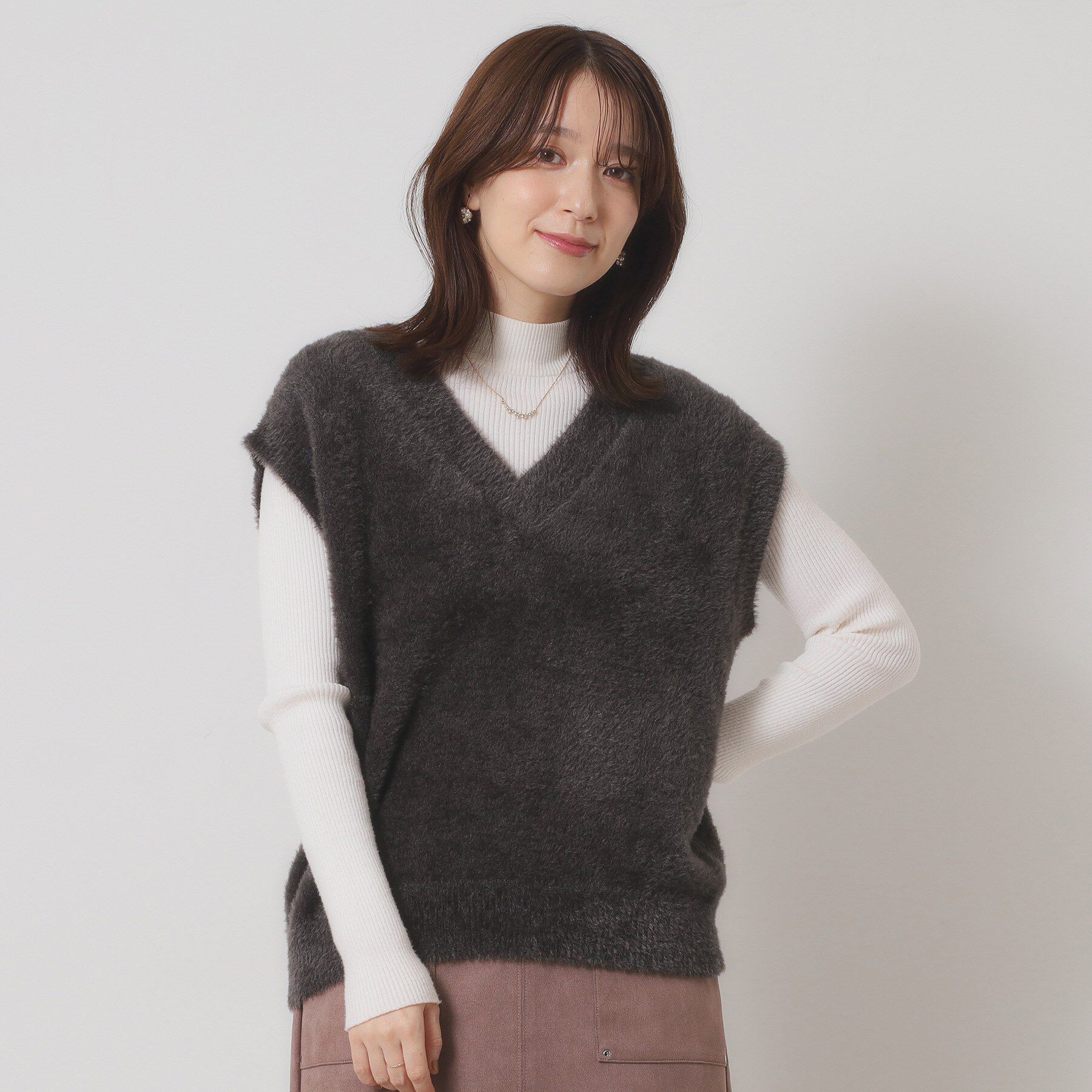 【デザイン】昨年大人気だったフェーザヤーンのニットジレ。今年は新色のライトピンクが加わりました♪今シーズンもマストアイテムのフェザーヤーンジレ。ゆる.. |